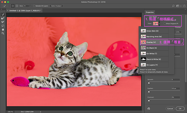 5. 接下來要進行更進一步的優化,點選「檢視模式(View Mode)」選擇「覆蓋(Overlay)」,在這個模式下能將瑕疵看得更清楚