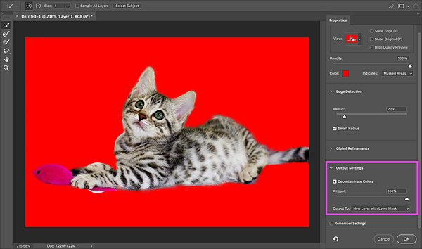 8. 輸出前可以勾選「淨化顏色」的選項, Photoshop 會幫忙調整細節的顏色,接著點選「新增使用圖層遮色片的圖層」,按下「確定」